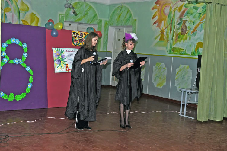 Ведущие концерта девчонки из 9-го класса.