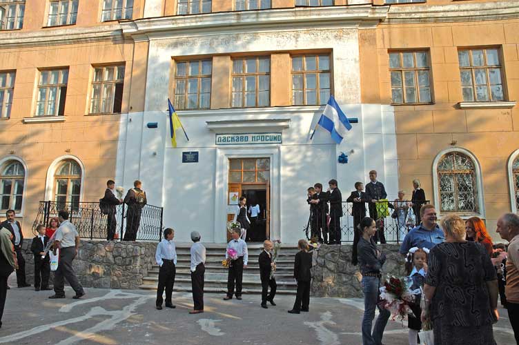Утро 1 сентября 2007 года у школьного крыльца.