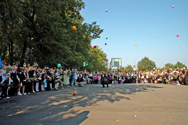 Взлетают в безоблачное небо разноцветные шары.