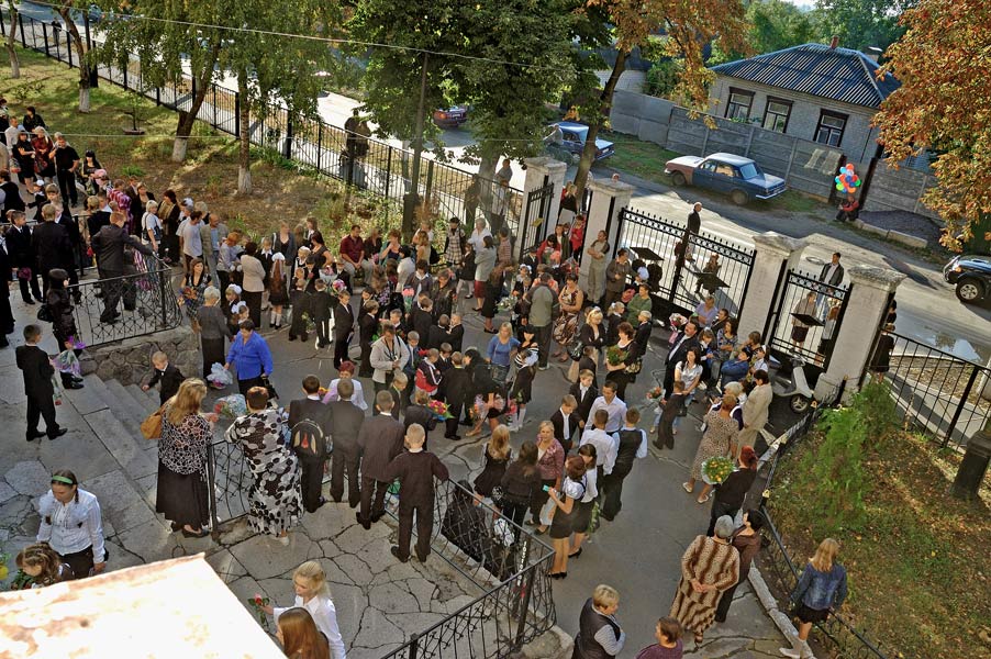 Утро 1 сентября 2009 года у школьного крыльца.