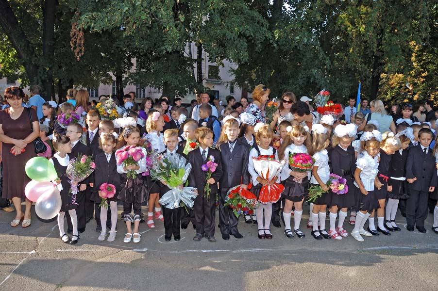 На школьной линейке уже "взрослые" вчерашние первачки