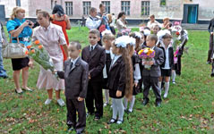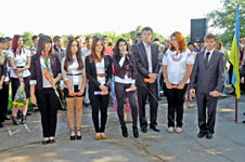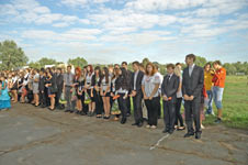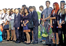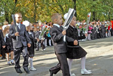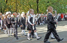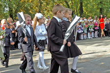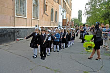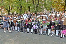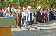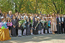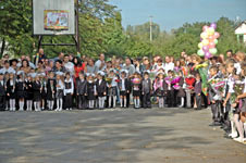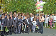 1-й -А и 1-й -Б 2012 года на школьной линейке.