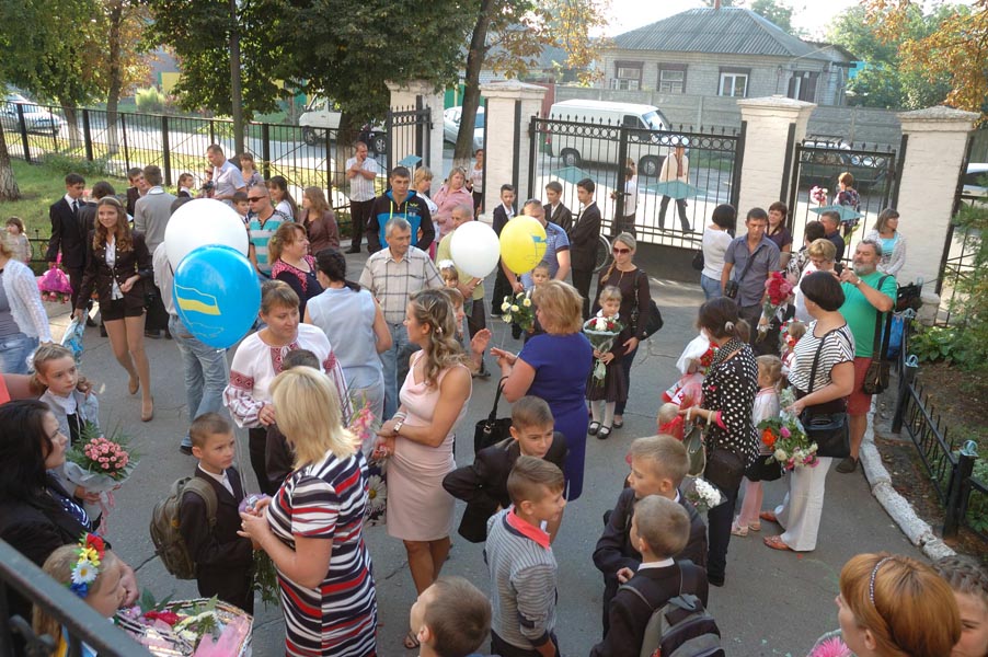 Пред праздничная суета на школьном дворе.