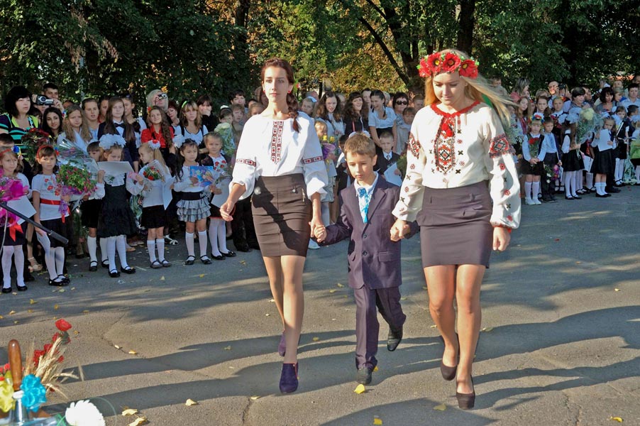 На школьной линейке.