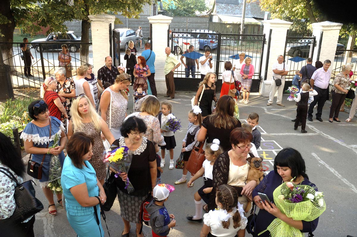 Праздничная суета на школьном дворе.
