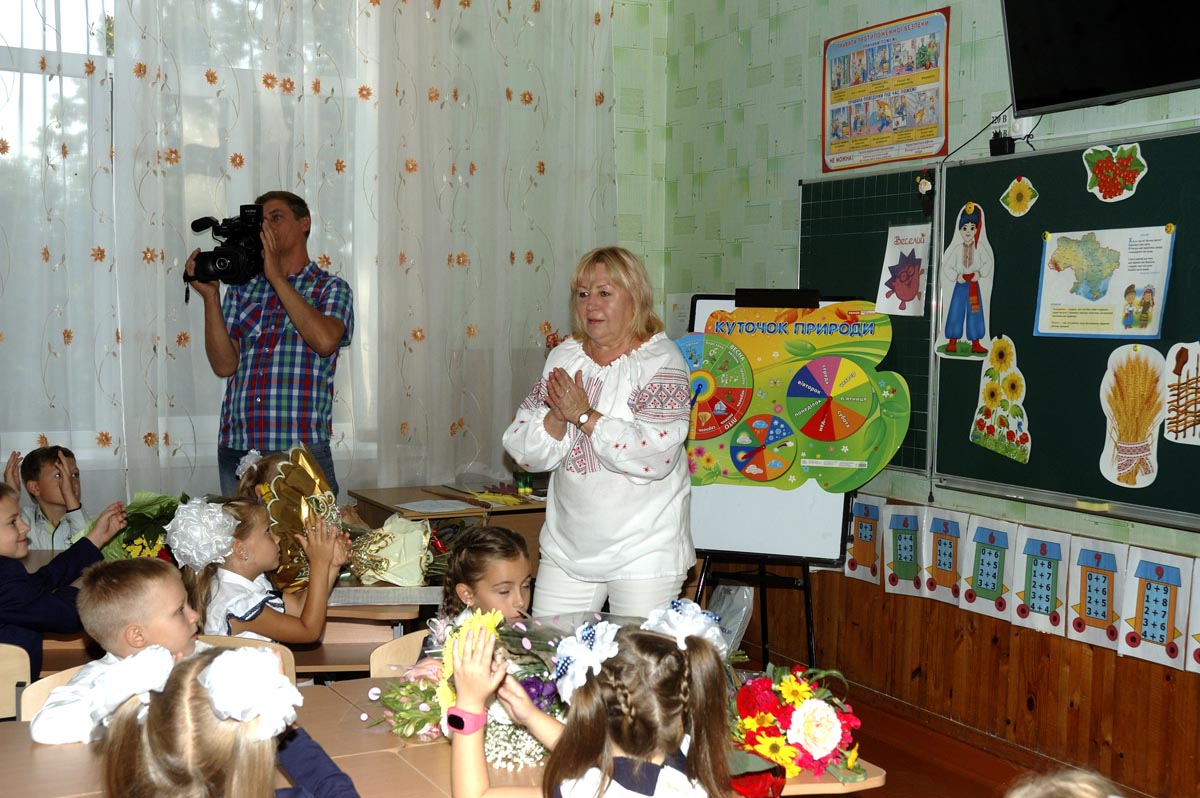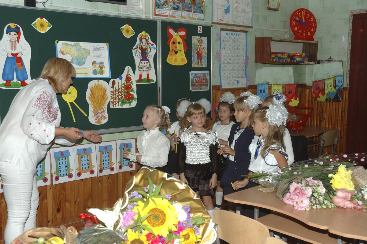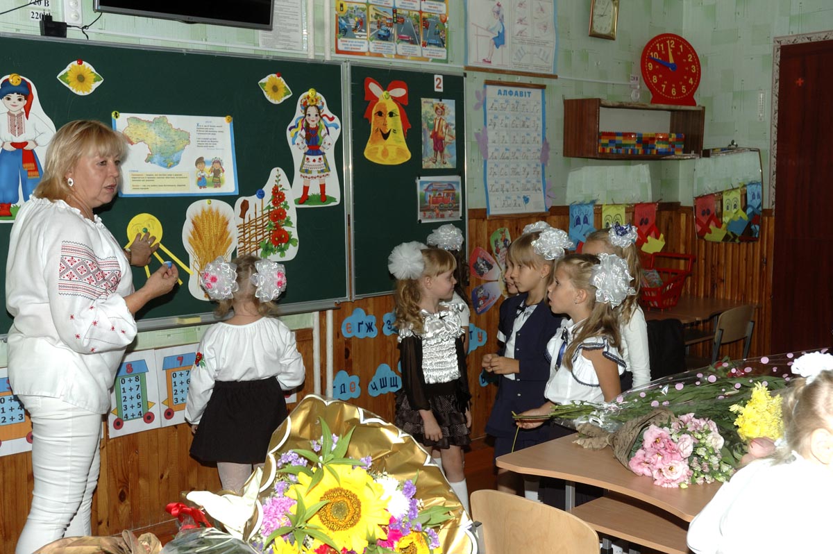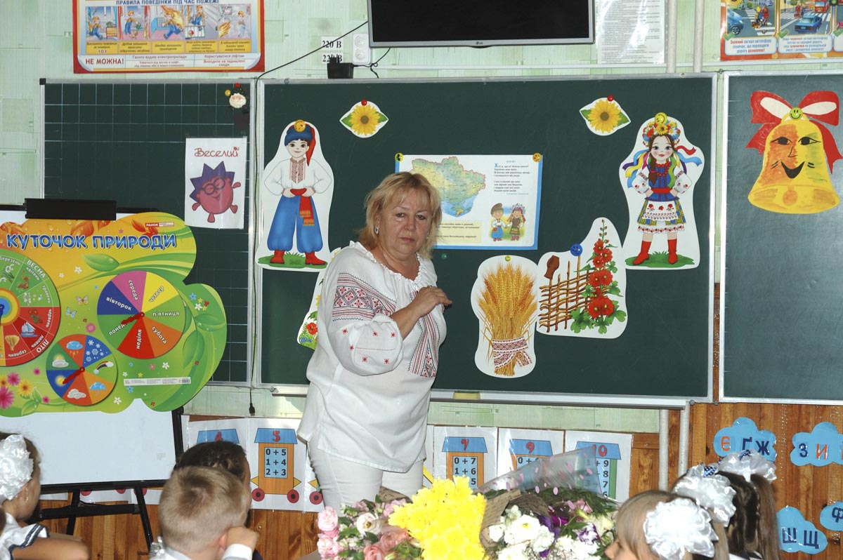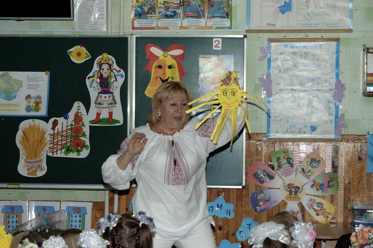 Первый урок в 1-А классе. Урок проводит учитель младших классов Дробашко Алла Викторовна. |
