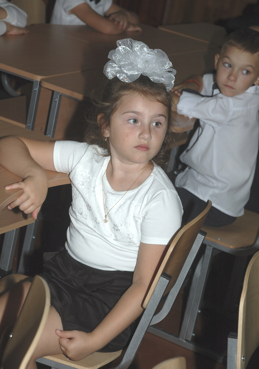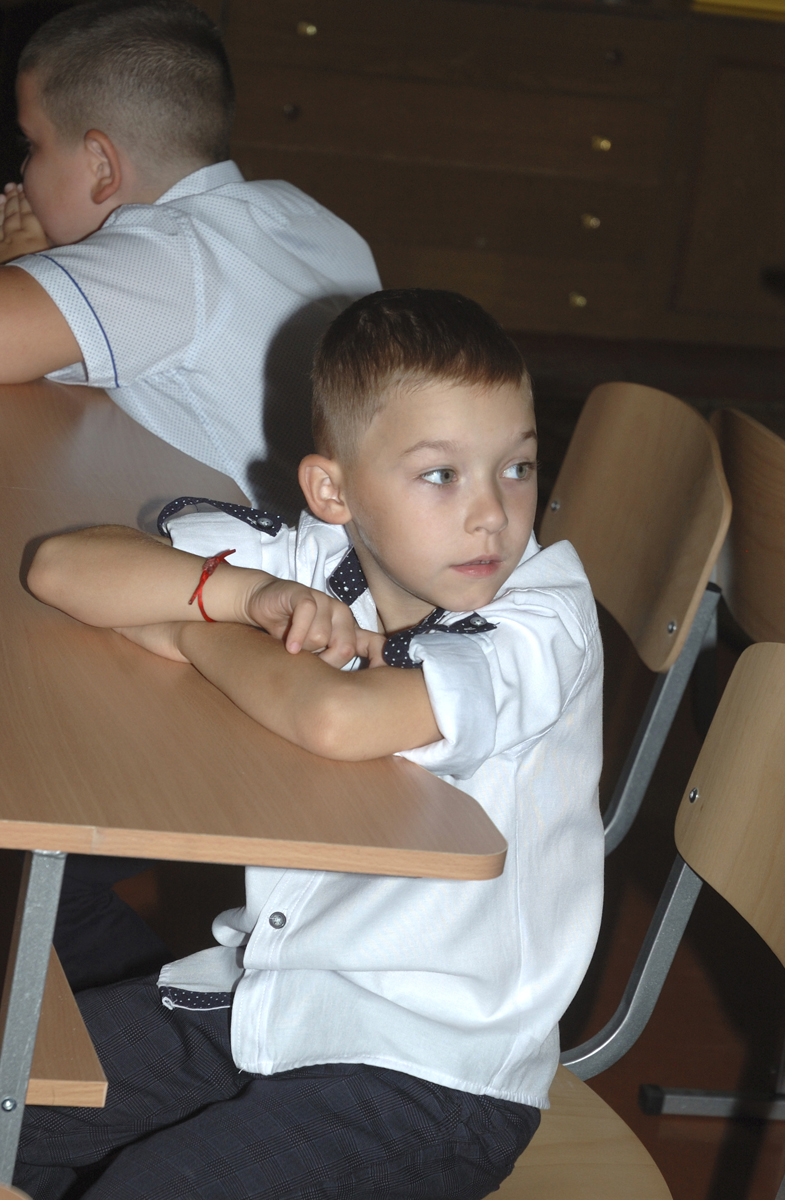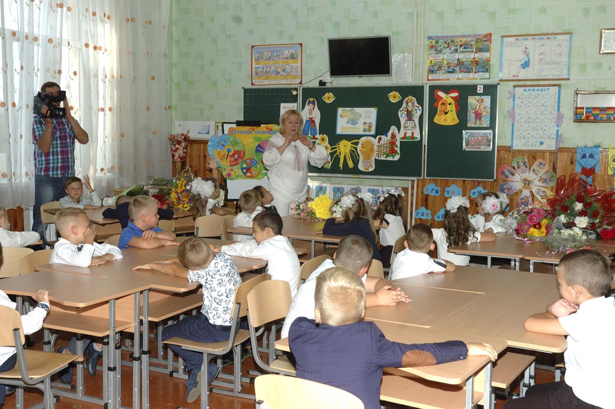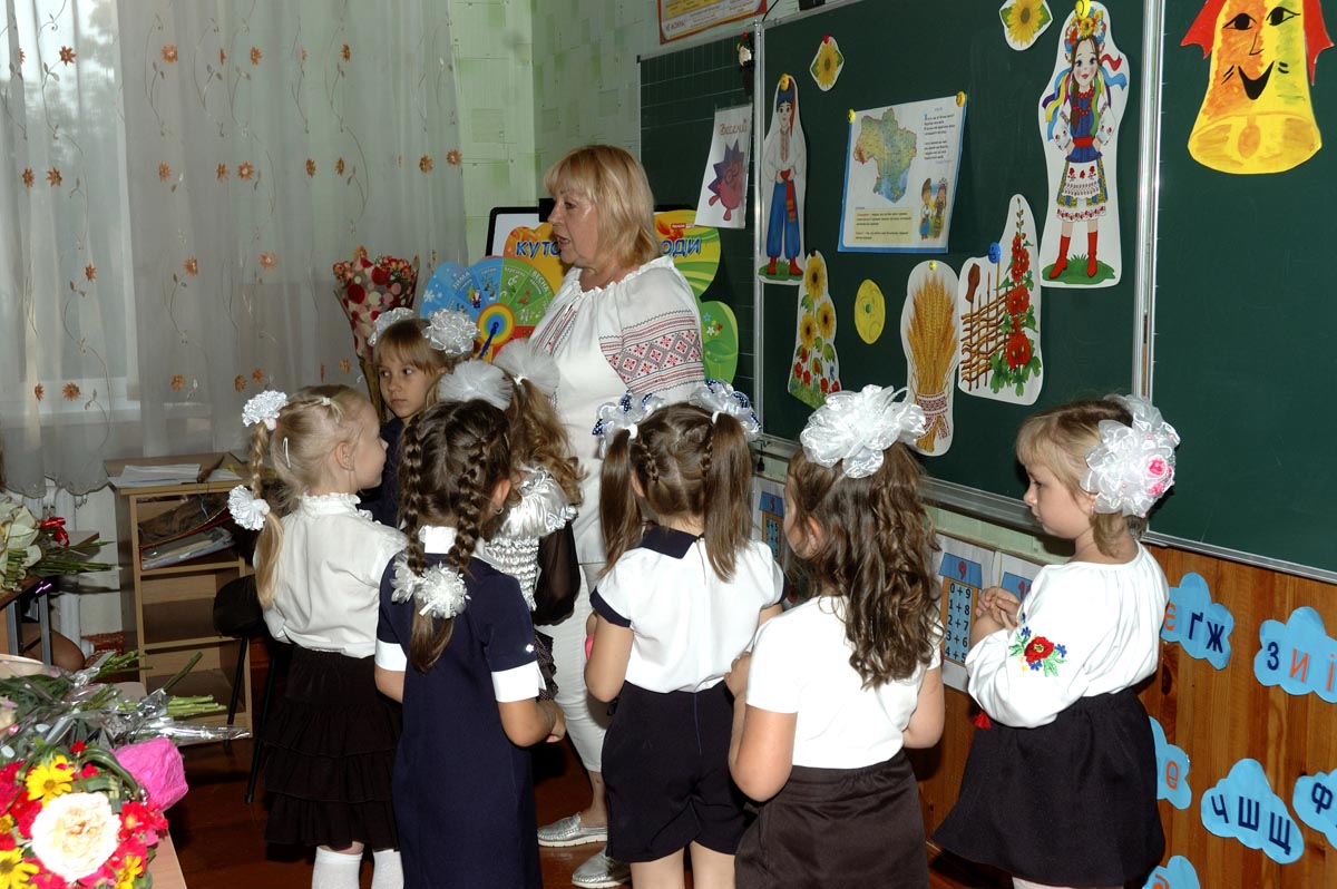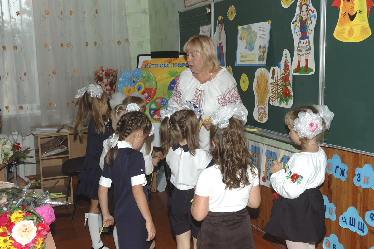 Первый урок в 1-А классе. Урок проводит учитель младших классов Дробашко Алла Викторовна. |