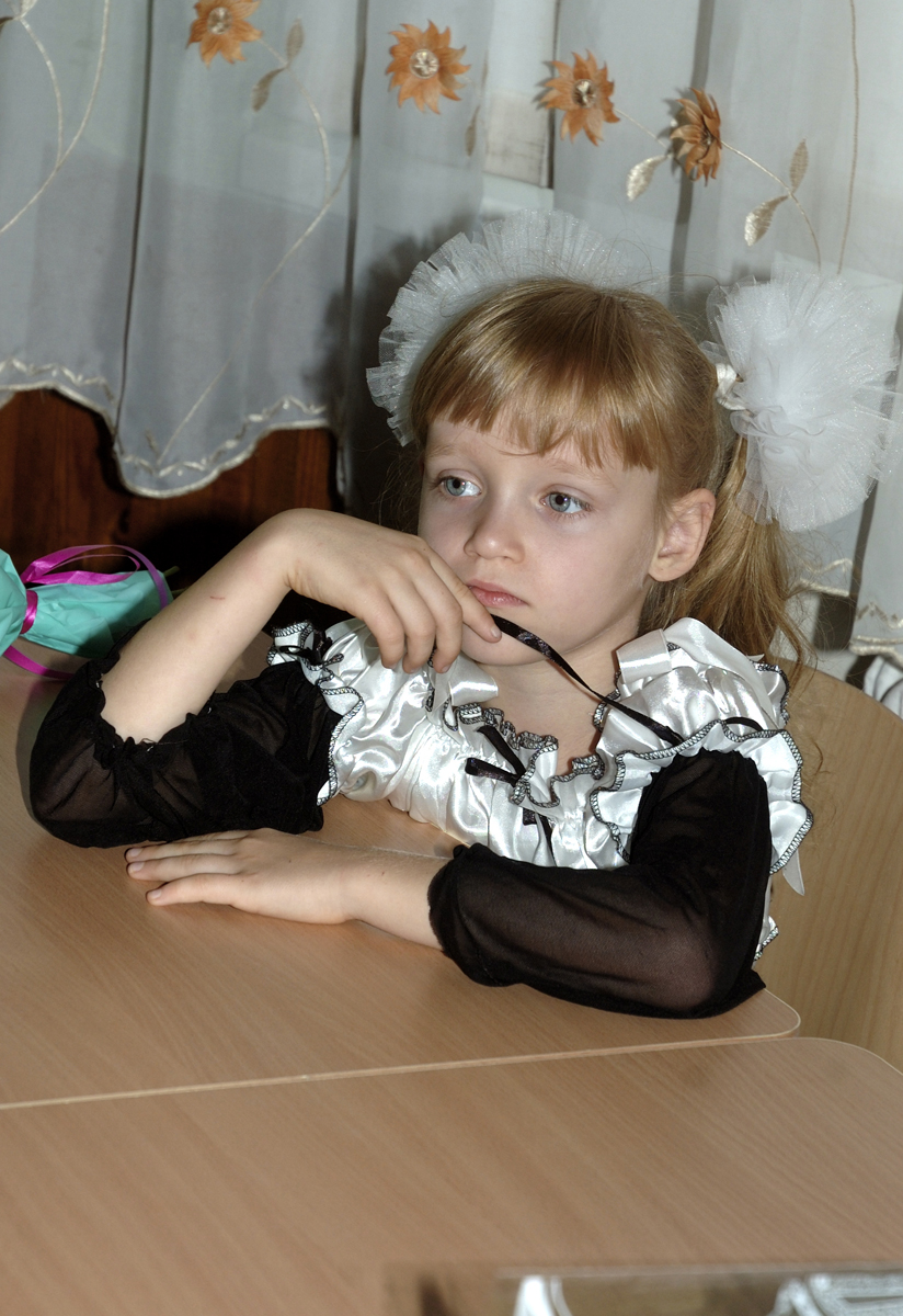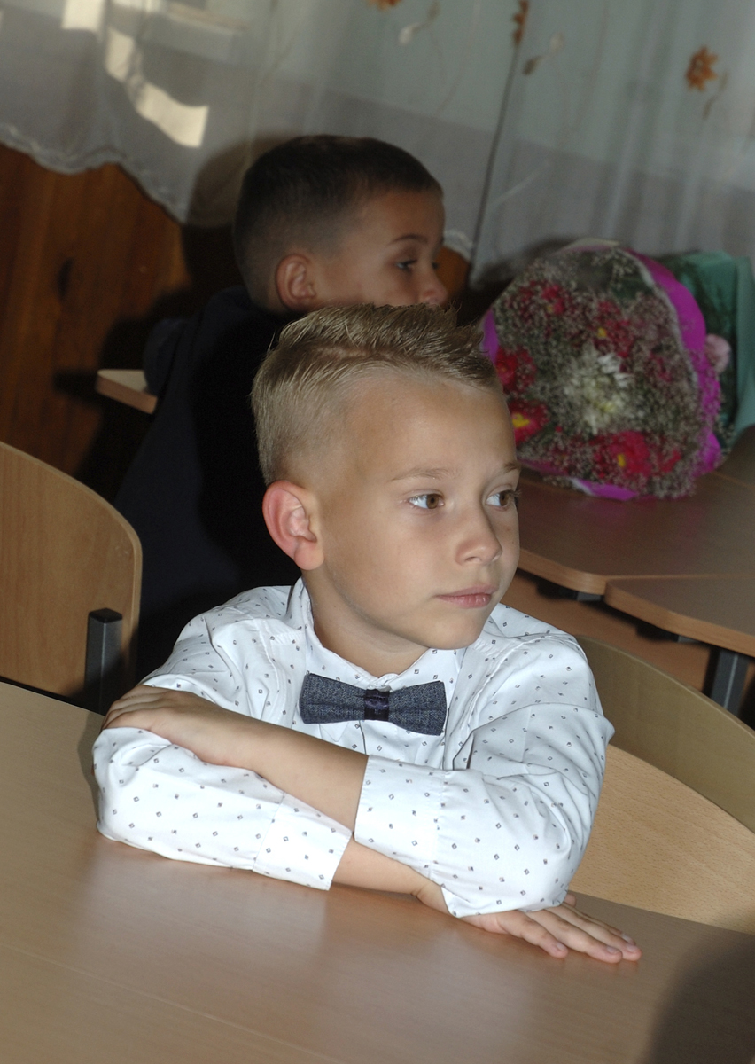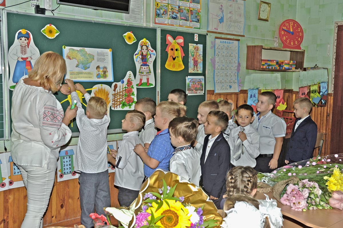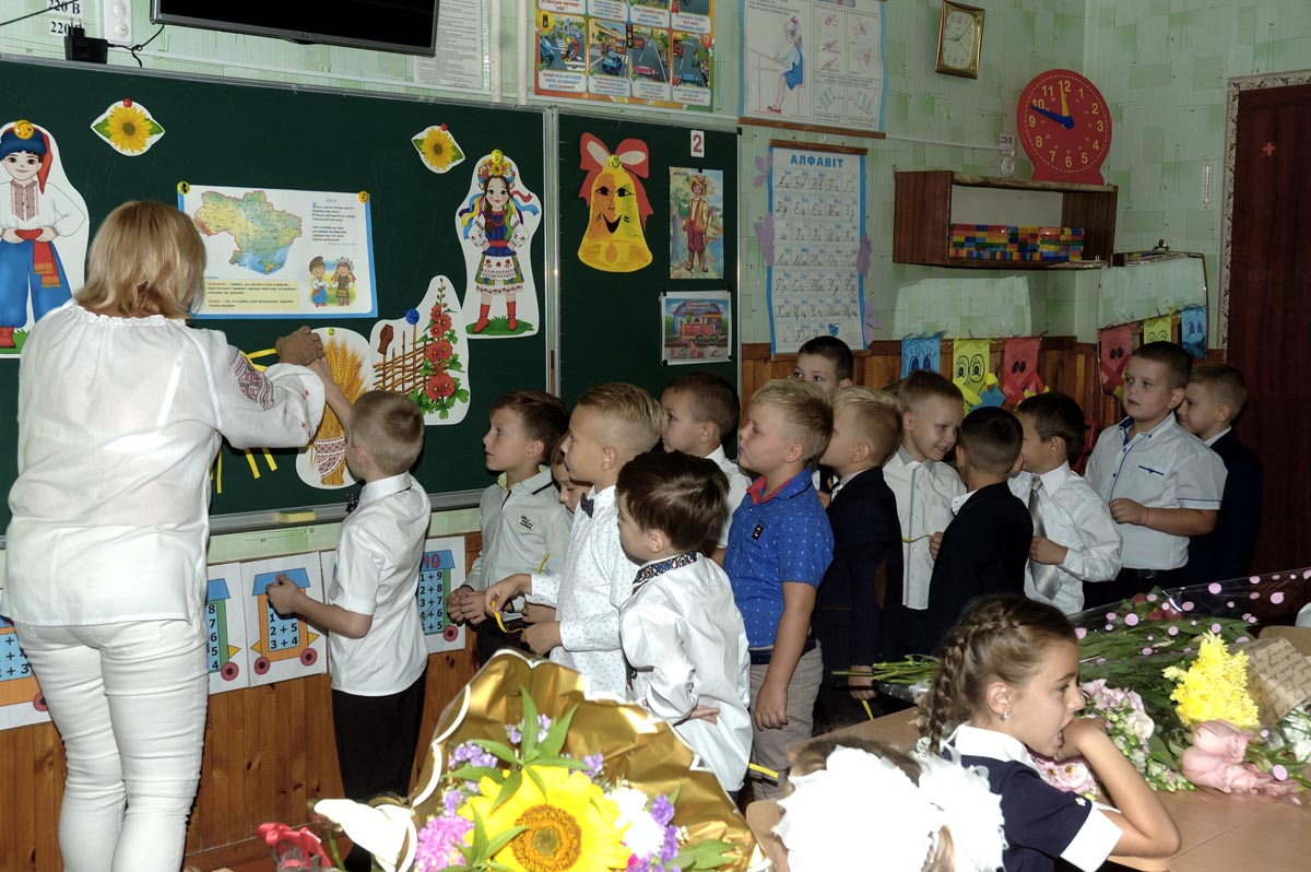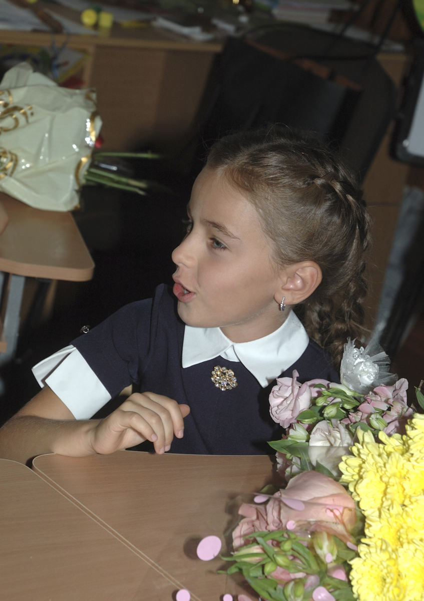 Первый урок в 1-А классе. Урок проводит учитель младших классов Дробашко Алла Викторовна. |