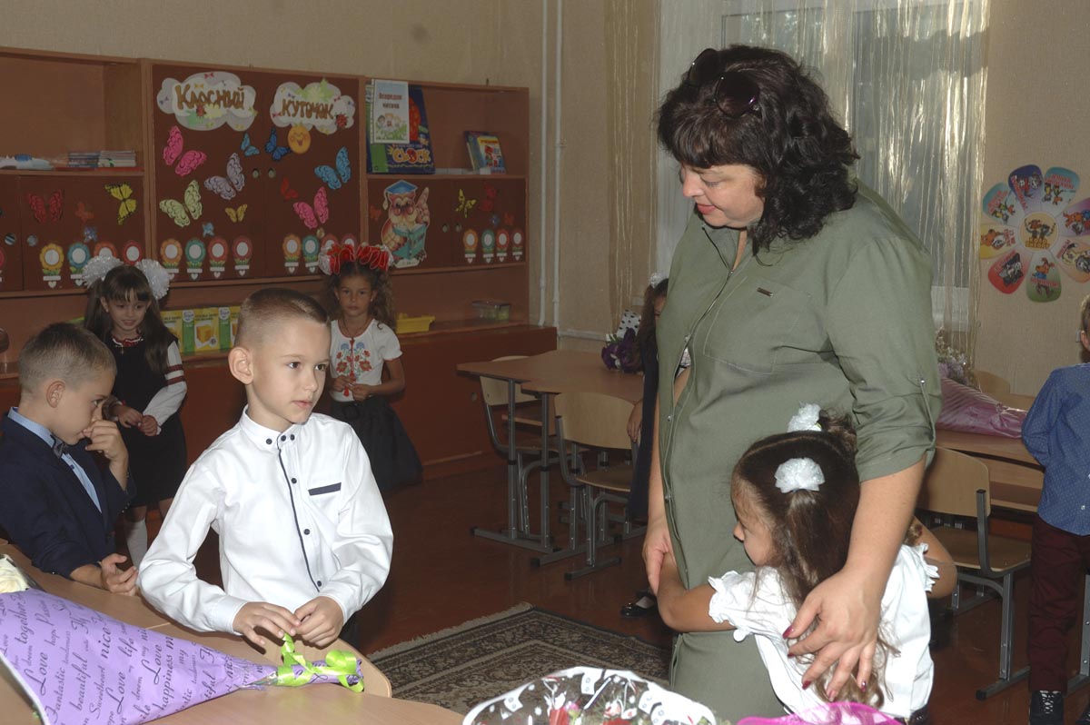 Первый урок в 1-Б классе. Урок проводит учитель младших классов Вергал-Капитонова В.В. |