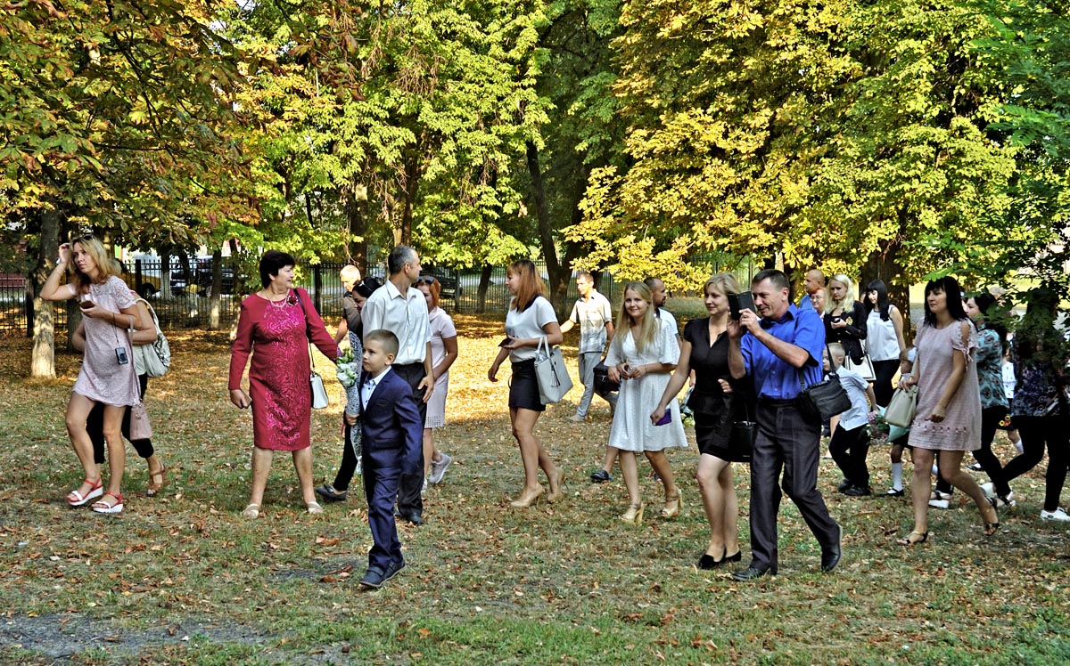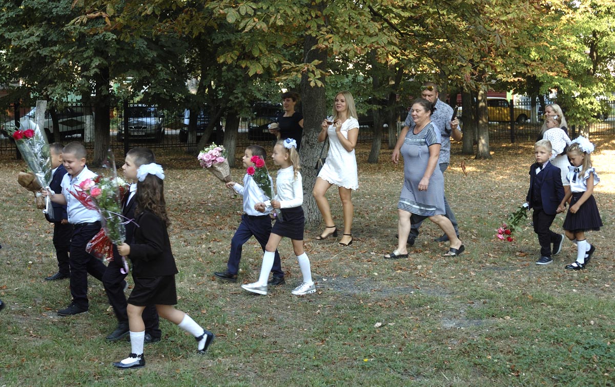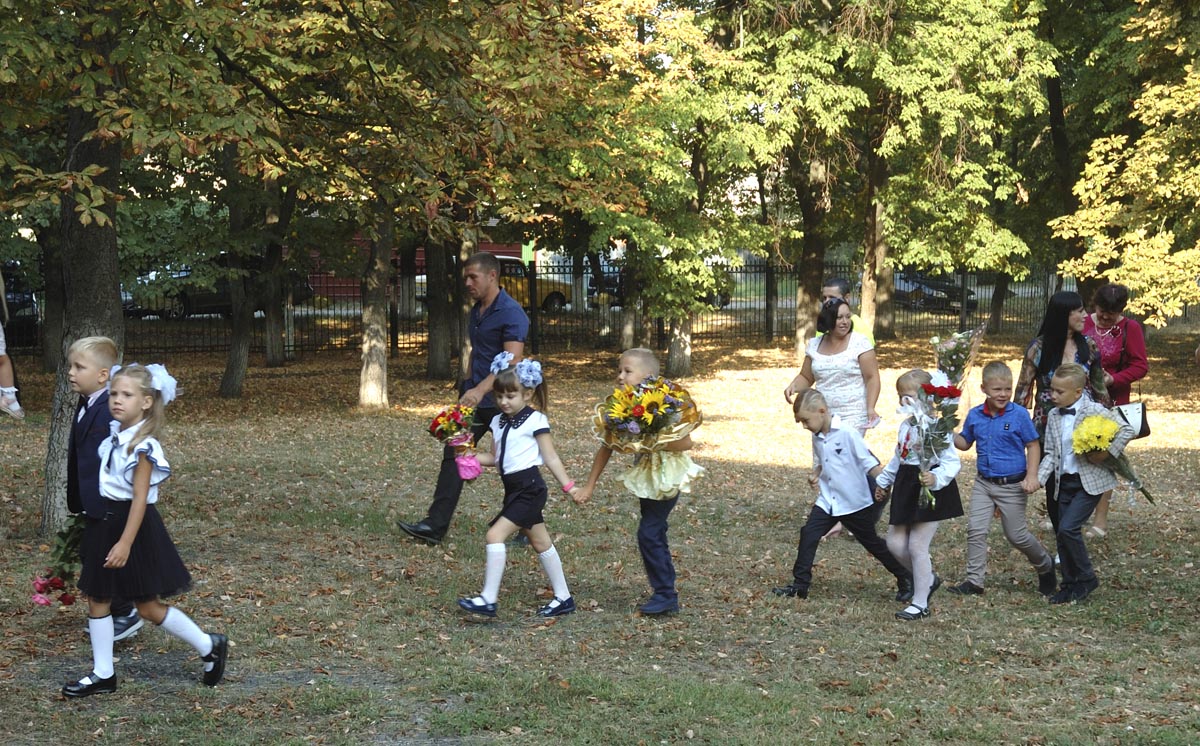 Идут первоклашки. |
