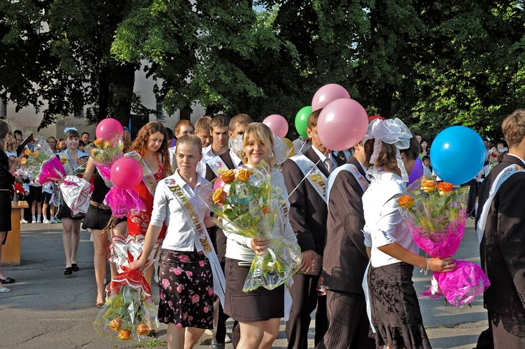 Выпускники 2007 занимают своё место на последней школьной линейке.