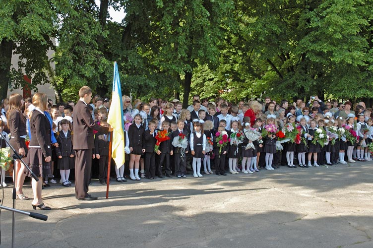 На торжественной линейке.