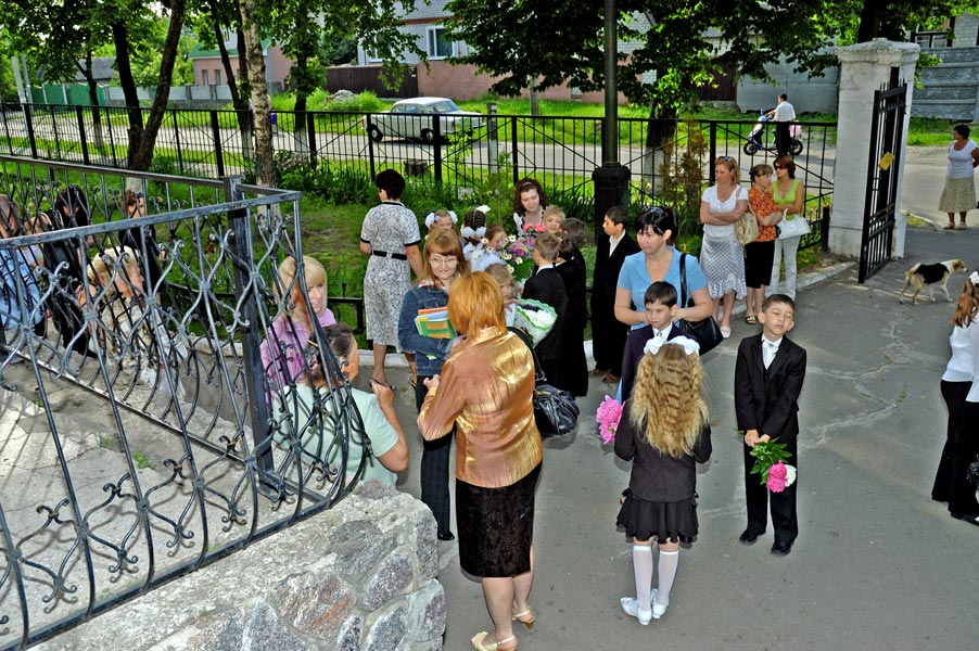На школьном дворе.