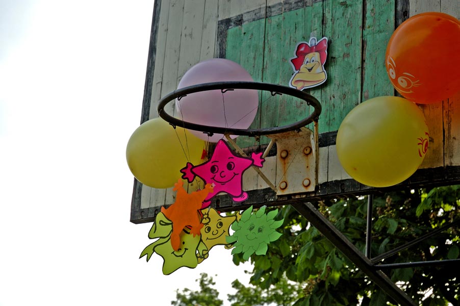 Праздничное убранство школьного двора.