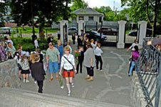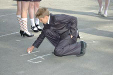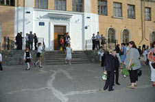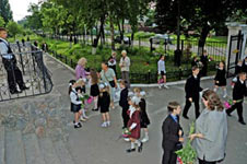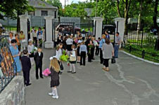 Праздничное оживление на школьном дворе.