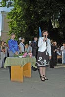 Открывает школьный праздник