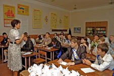 урок в 11-м классе проводит первая учительница