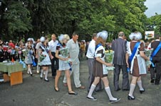 Праздничное оживление на школьном дворе.