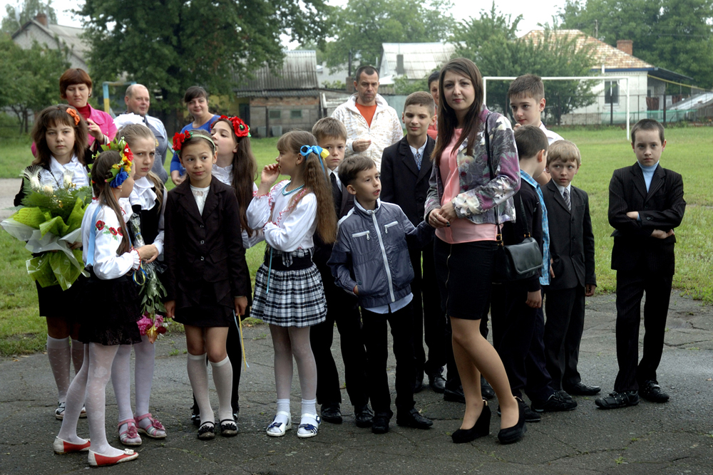 В школе перед линейкой.