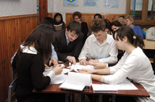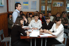 Учні 9-х класів жваво обговорюють завдання на урок.
