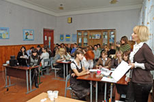 Урок у рамках семінару проводить учитель художньої культури школи № 23