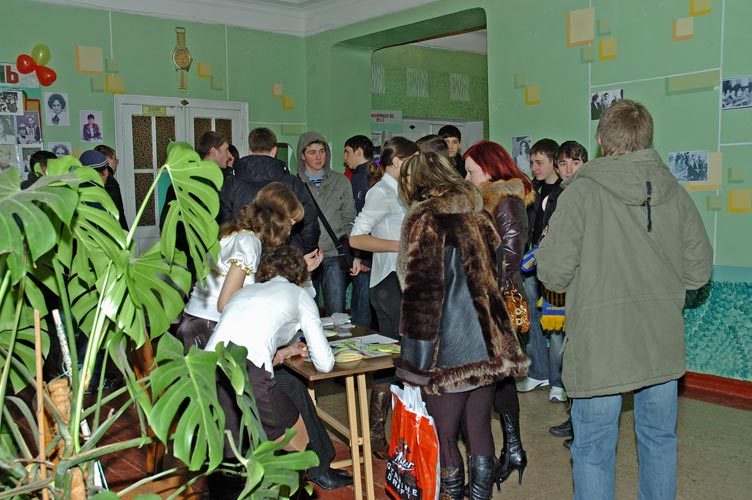 Гостей школы встречает 11-й класс.