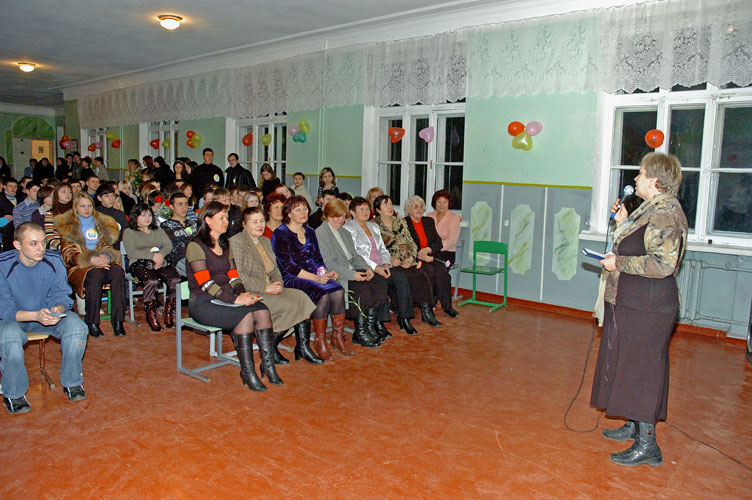 К гостям школы обращается ветеран школы, смотритель школьного музея